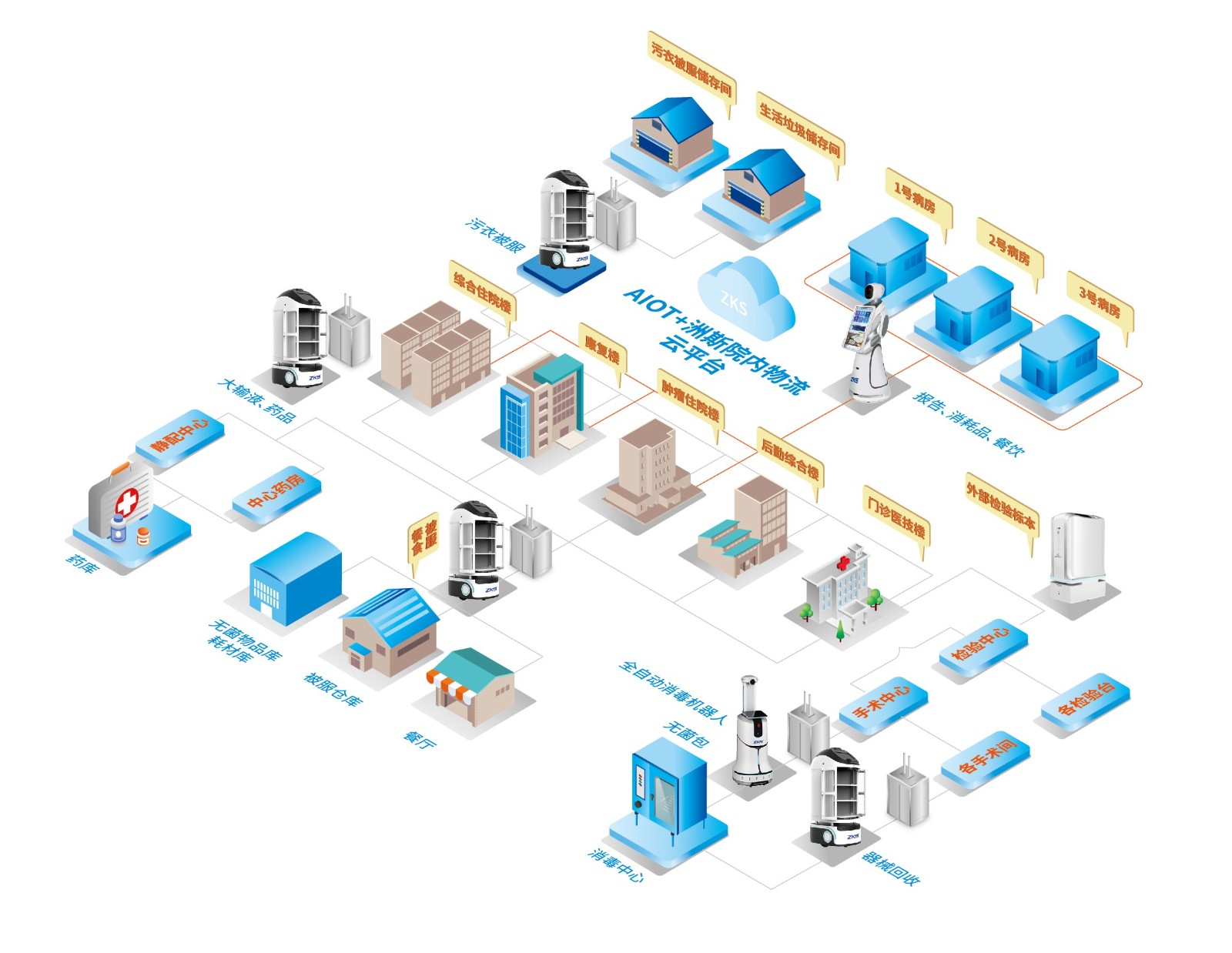 醫院物流機器人系統根據醫院對物流需求的時效性、安全性、運輸能力等要求,配置與之匹配的充電區、待機區、 等待區、調度區、作業區,同時提供相應的物流專梯、設計專用通道、安裝門控、梯控等裝置,可滿足全院物流業 務需求。